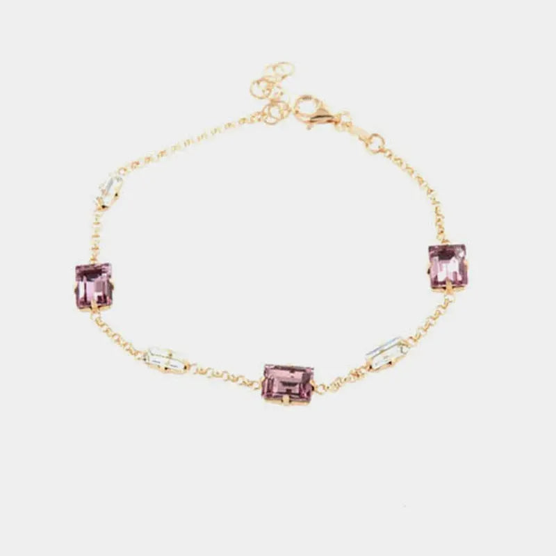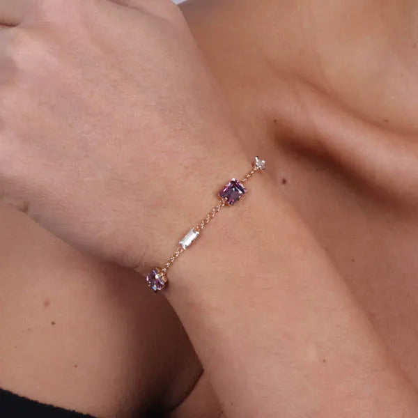 Bracciale in Argento 925 con giro di cristalli ametista e punti luce di cristalli bianchi.