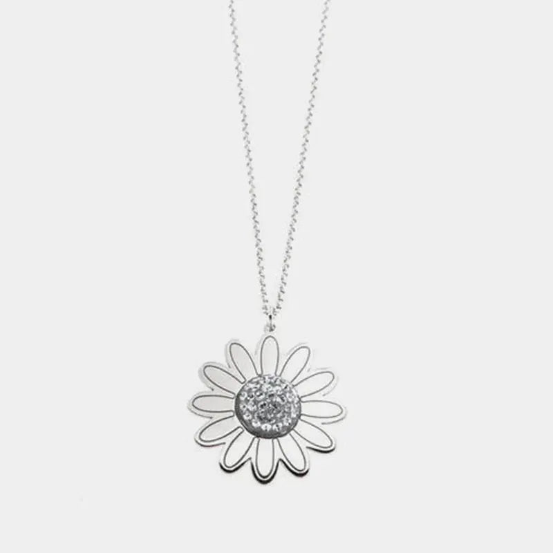 Halskette aus 925er Silber mit hängender Margerite und farbigen Kristallen