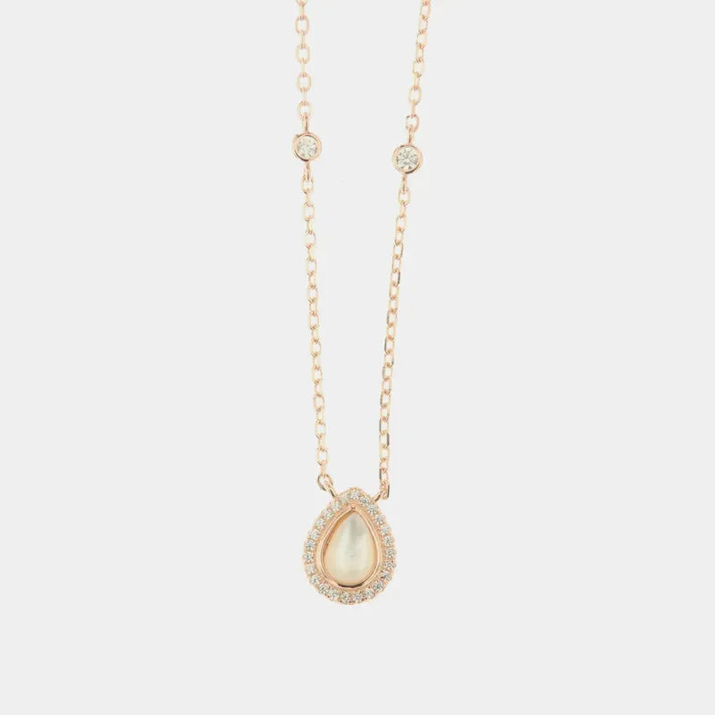 Collana in Argento 925 con ciondolo a forma di goccia in madre perla e zirconi bianchi