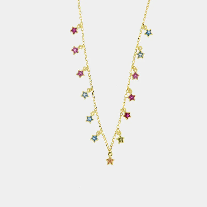 Collana in Argento 925 con stelle pendenti in zirconi multicolor