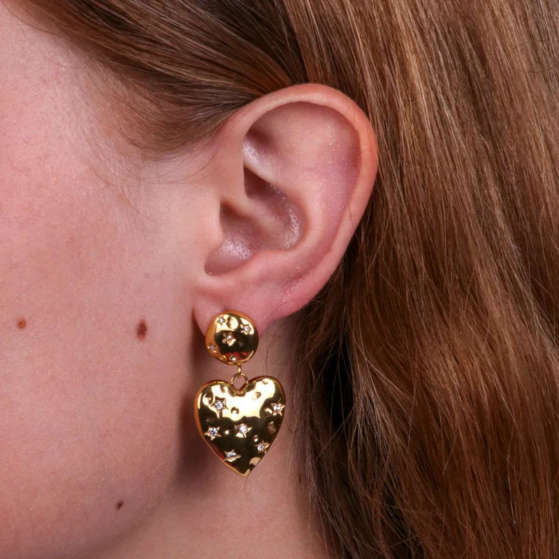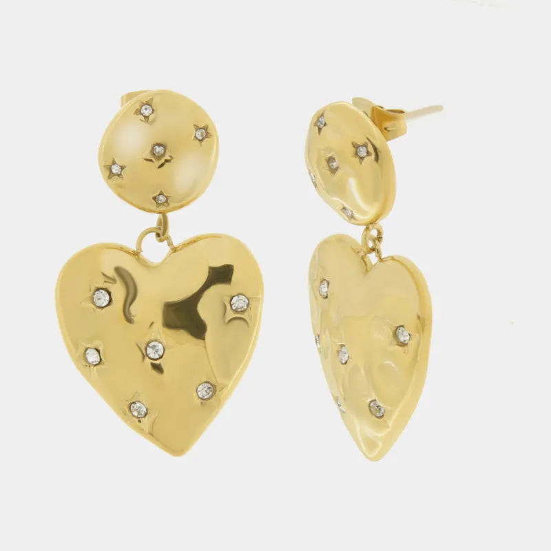 Orecchini in Acciaio a lobo con cuore e zirconi