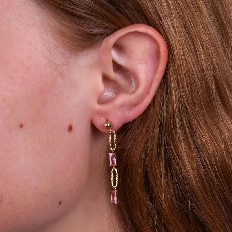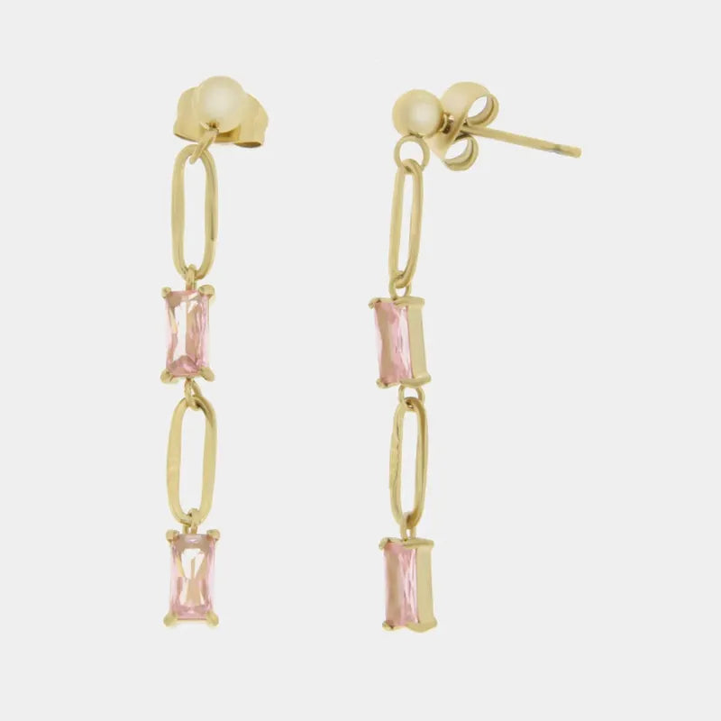 Orecchini in Acciaio con catena ovale e cristalli rosa