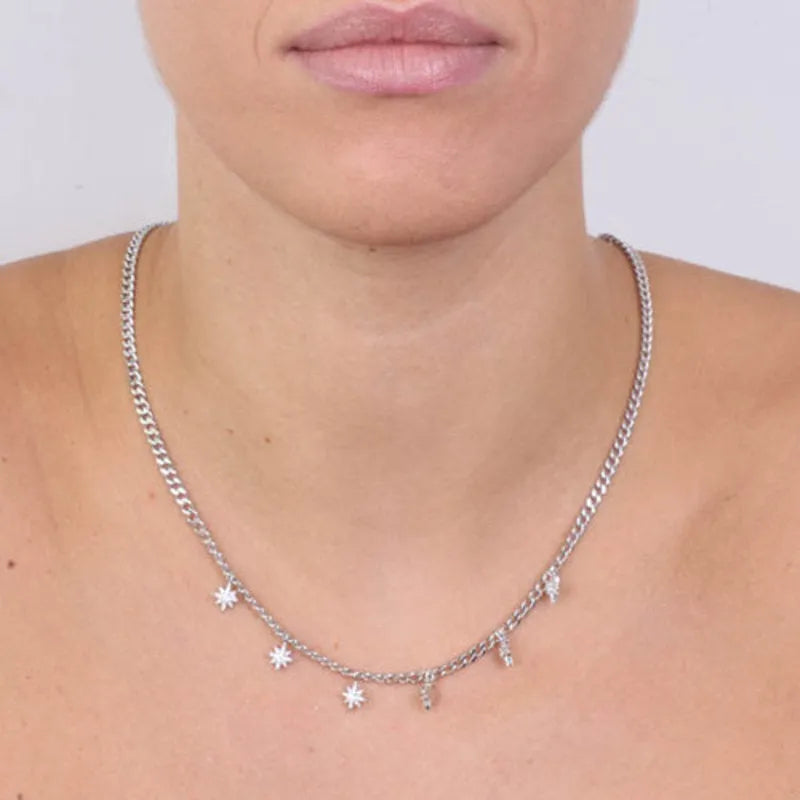 Collana in Argento 925 con stelle di zirconi bianchi pendenti