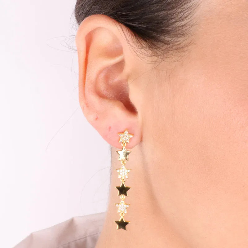 Orecchini in Argento 925 pendenti a forma di stelle impreziosite da zirconi bianchi