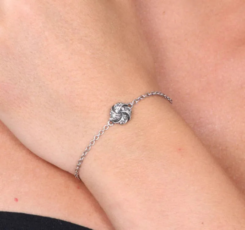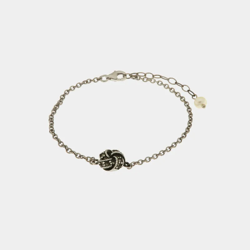 Bracciale in Argento 925 a forma di nodo stile antico con cristalli fume' e bianchi