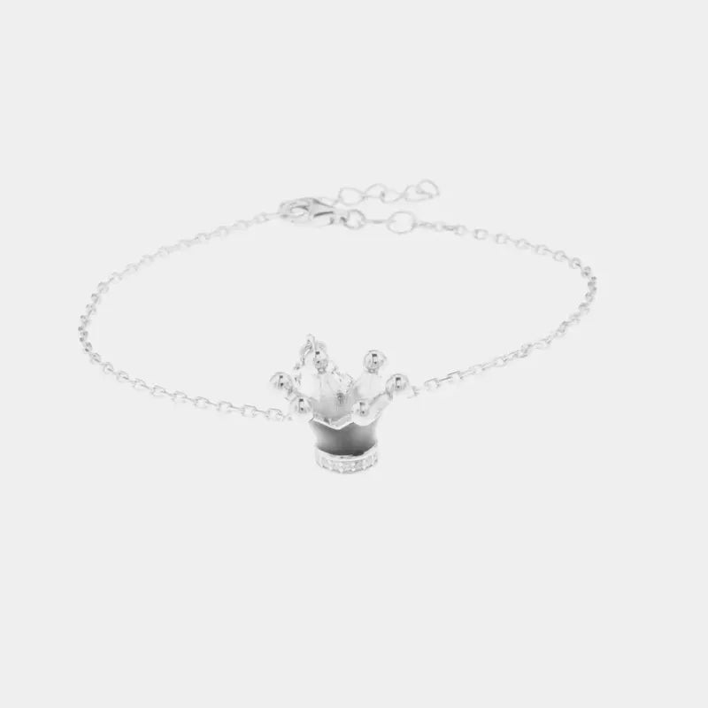Bracciale in Argento 925 con pendente a forma di corona impreziosito da zirconi bianchi e smalto nero