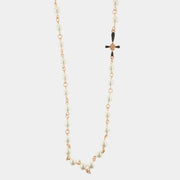 Metallkette mit weißen Perlen, veredelt durch ein Kreuz mit schwarzen Kristallen