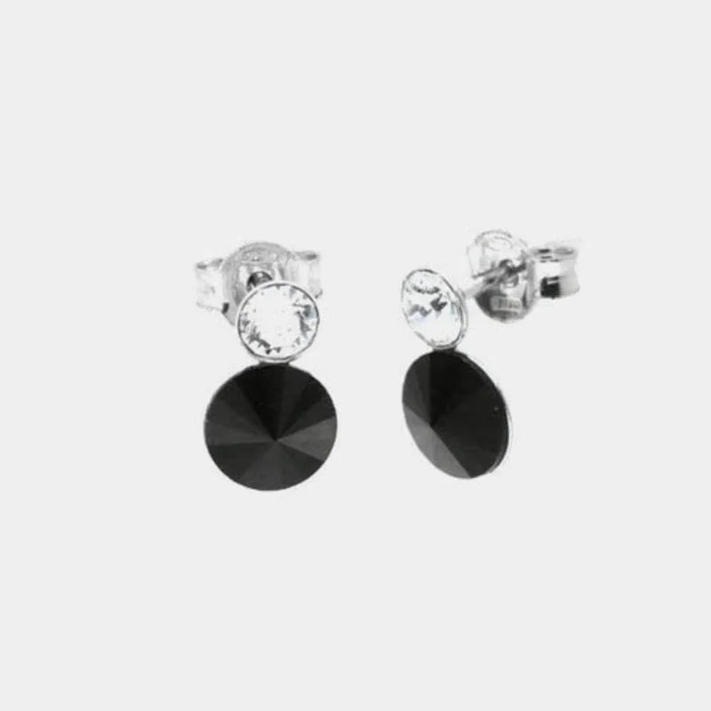 Orecchini in Argento 925 doppio punto luce pendente con cristalli neri