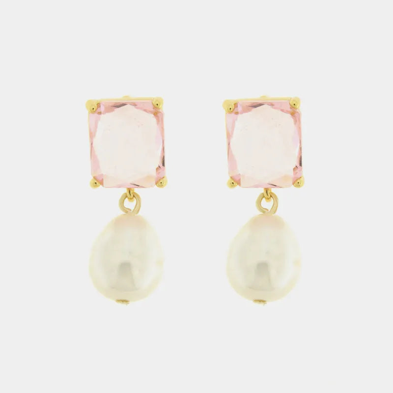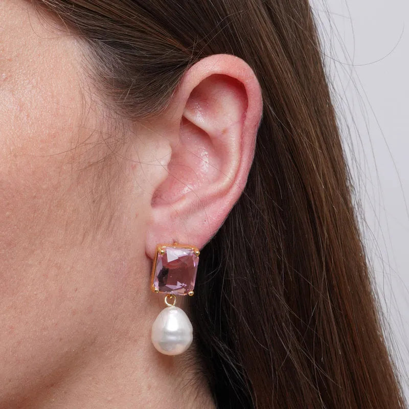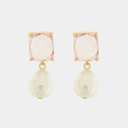 Orecchini in Metallo con perla pendente e cristalli rosa a lobo