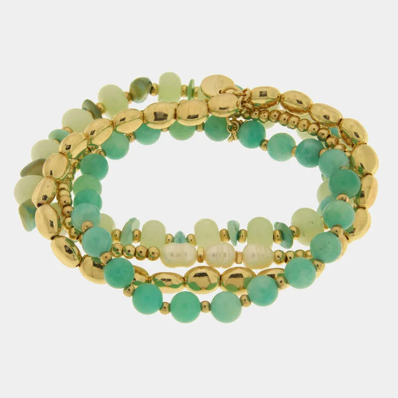 Bracciale in Metallo multifilo con cristalli verdi ispirati al vetro di Murano