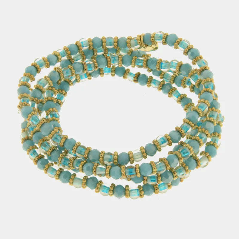 Bracciale in Metallo multifilo con cristalli verdi ispirati al vetro di Murano