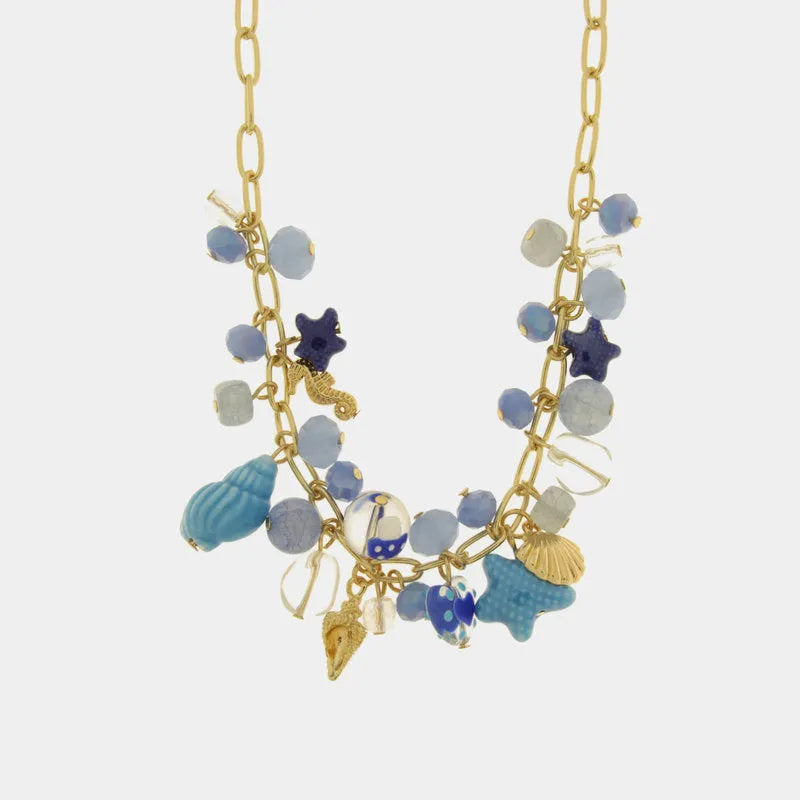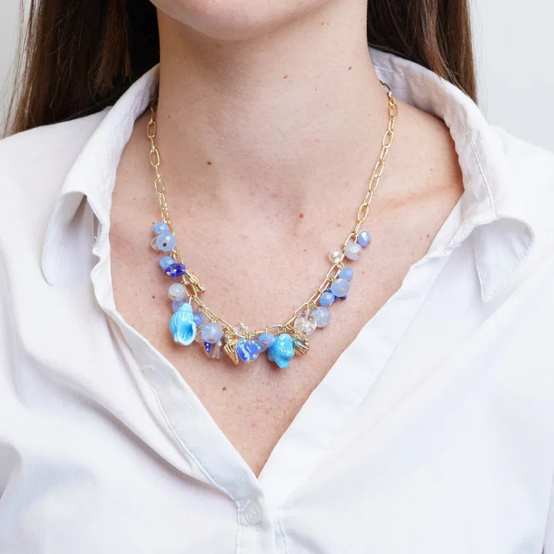 Collana in Metallo con cristalli blu ispirati al vetro di Murano