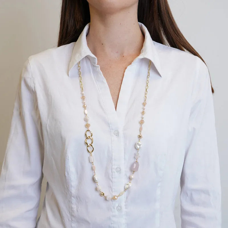 Collana in Metallo con cristalli rosa ispirati al vetro di Murano
