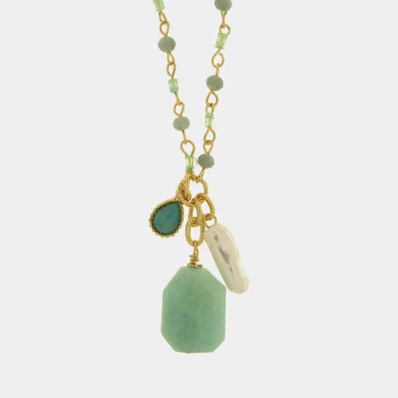 Collana in Metallo con cristalli verdi ispirati al vetro di Murano