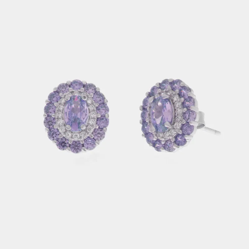 Orecchini in Argento 925 con zirconi lilla dalla forma ovale