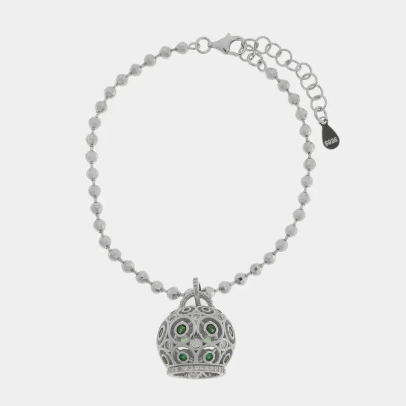 Bracciale in Argento 925 con campanella impreziosita da zirconi