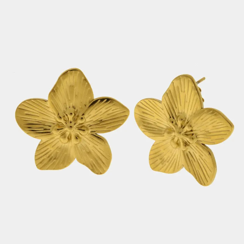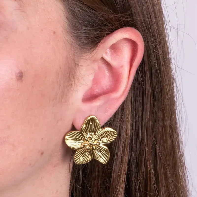 Edelstahlohrstecker mit gerillten Blumen am Ohrläppchen