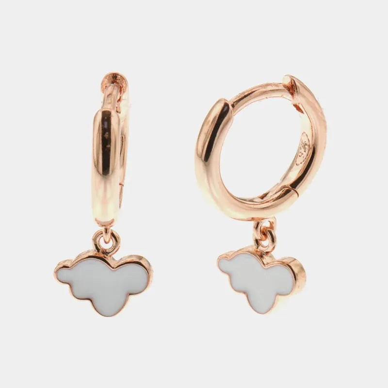 Orecchini in Argento 925 a forma di cerchio con pendenti a forma di nuvole smaltate bianche