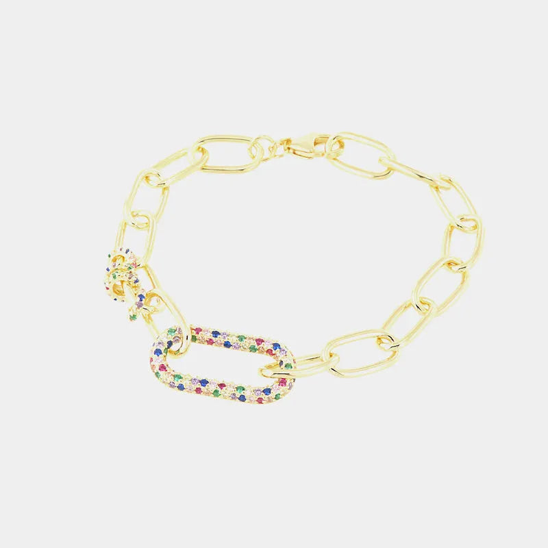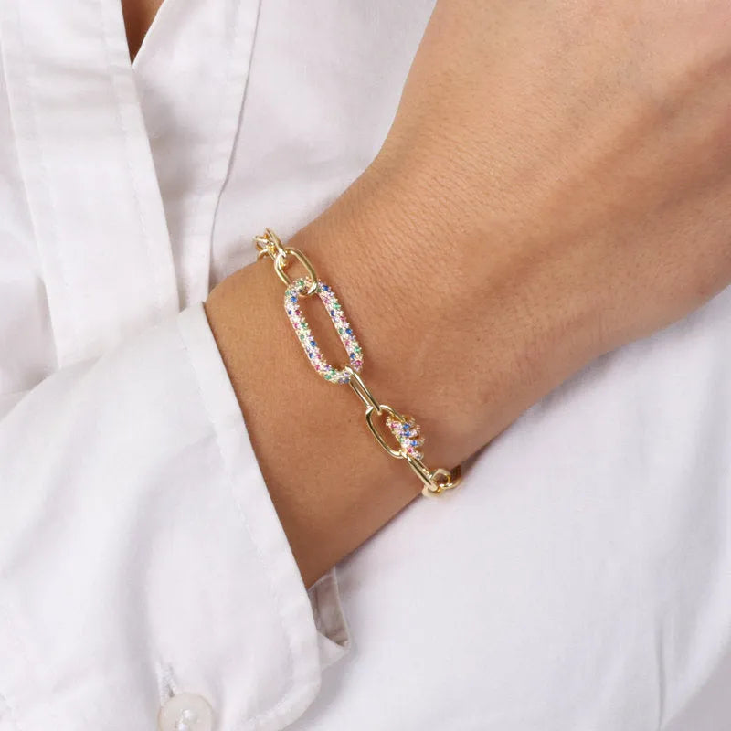 Bracciale in Argento 925 a catena e ovali di zirconi multicolor