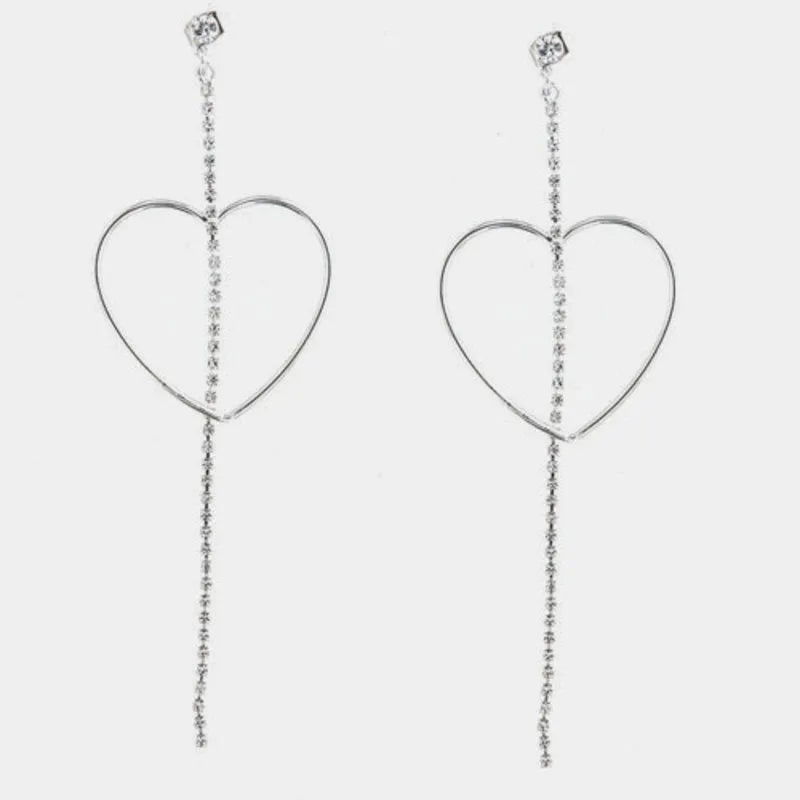 Orecchini in Metallo  a forma di cuore pendente impreziosito da cristalli
