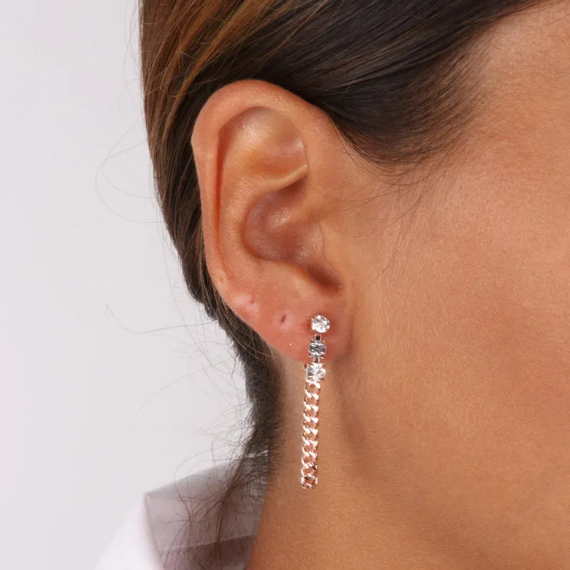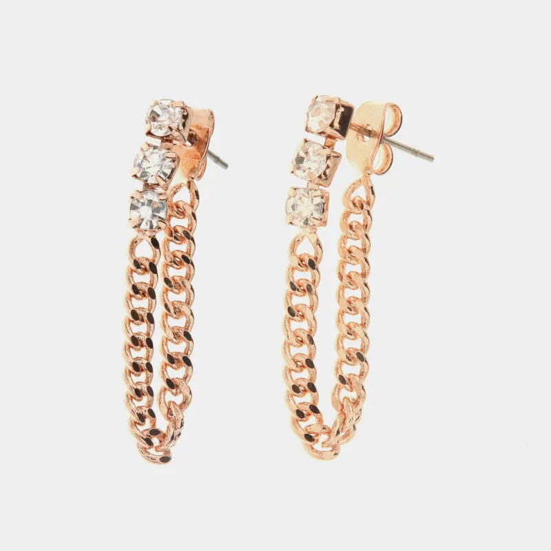 Orecchini in Metallo con cristalli bianchi e catena pendente placcato oro rosè