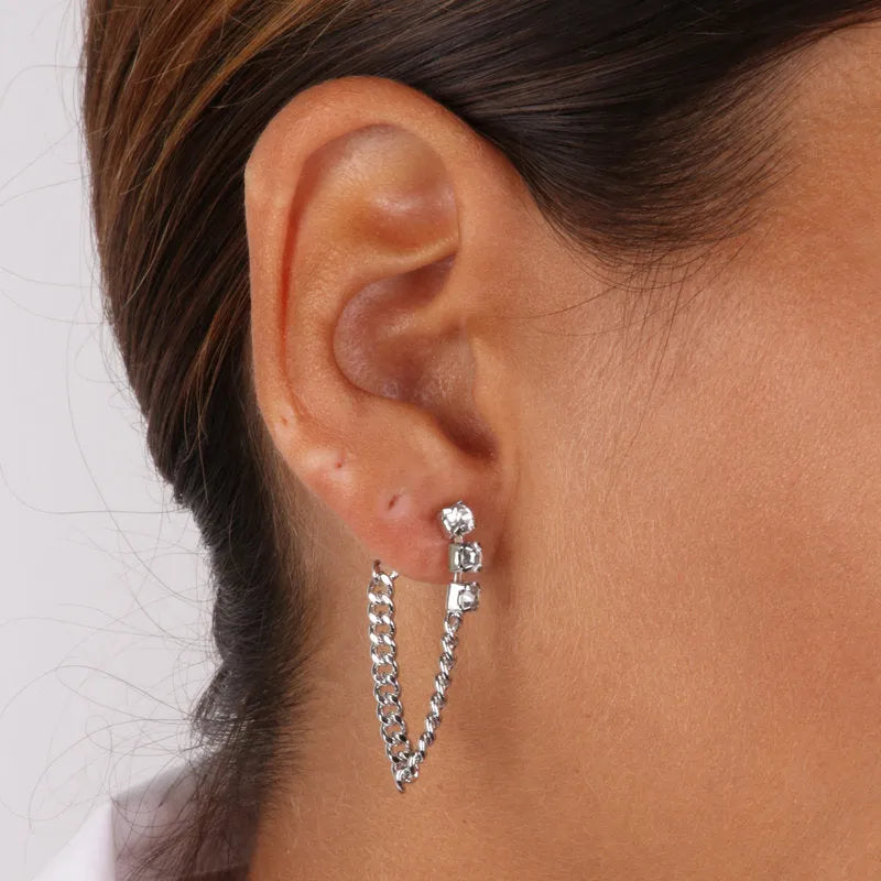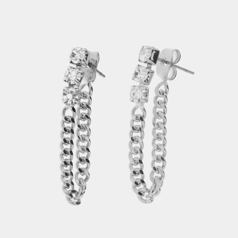 Orecchini in Metallo con cristalli bianchi e catena pendente rodiato