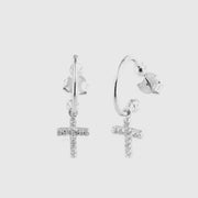 Orecchini in Argento 925 cerchietto con croce pendente impreziosita da zirconi bianchi