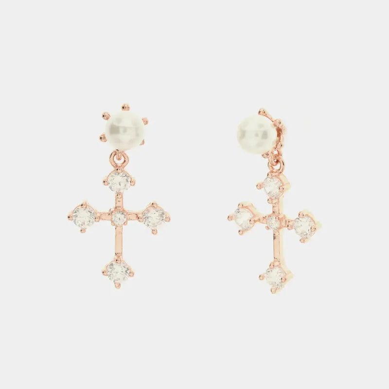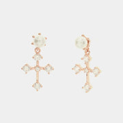 Orecchini in Argento 925 con perle e pendente a forma di croce impreziositi da cristalli bianchi