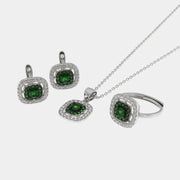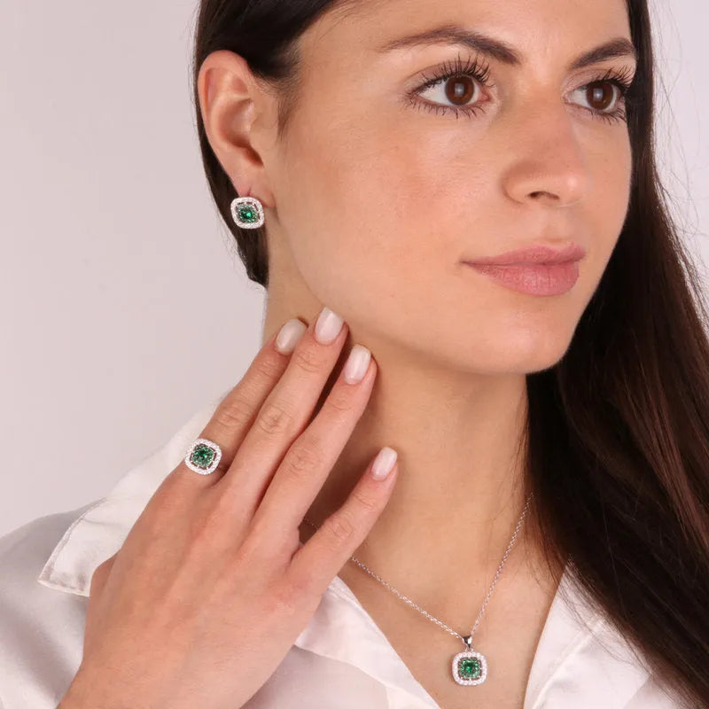 Set in Argento 925 con forma quadrata impreziosita zirconi verdi e bianchi