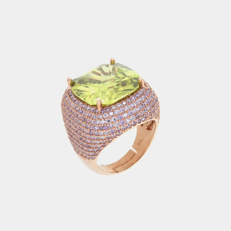 Anello in Argento 925 con zircone centrale ghiaccio e pavè di zirconi