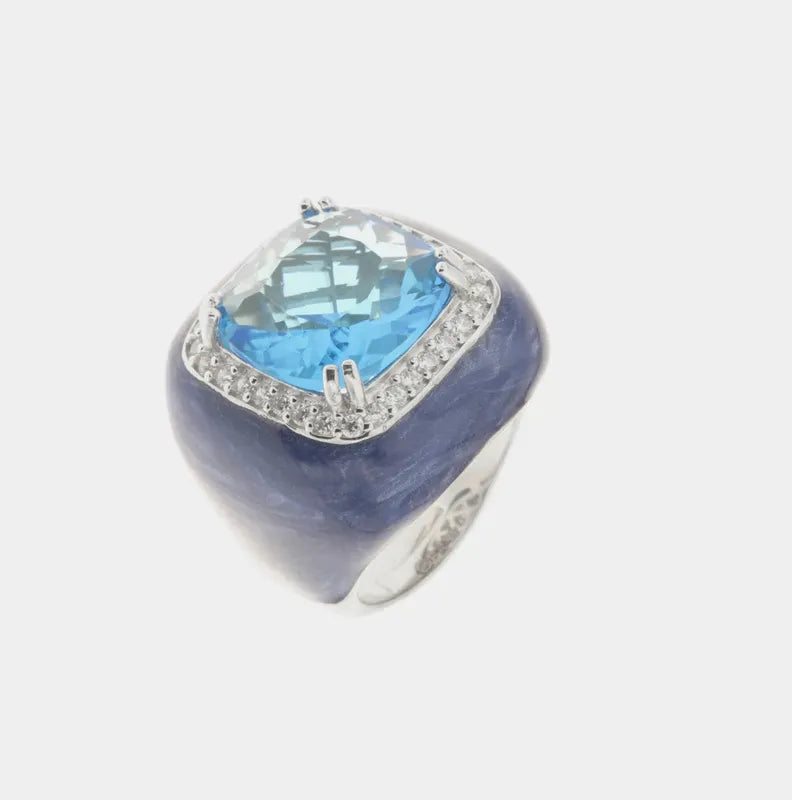 Anello in Argento 925 smalatato blu con zircone azzurro centrale e zirconi bianchi