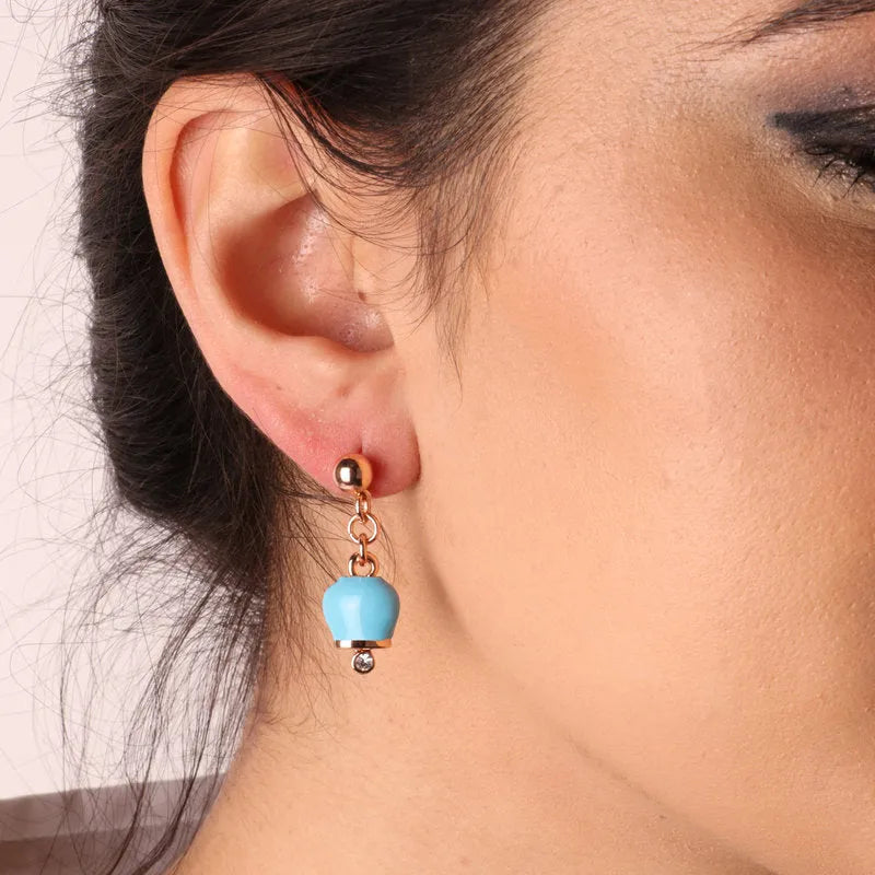 Orecchini in Metallo con campanelle portafortuna pendenti verde acqua, impreziosite da punto luce - BYSIMON gioielli