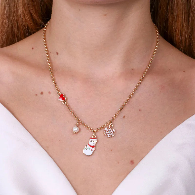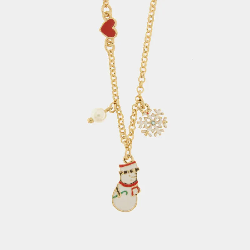 Collana in Metallo con pupazzo di neve pendente ,fiocco di neve e perla