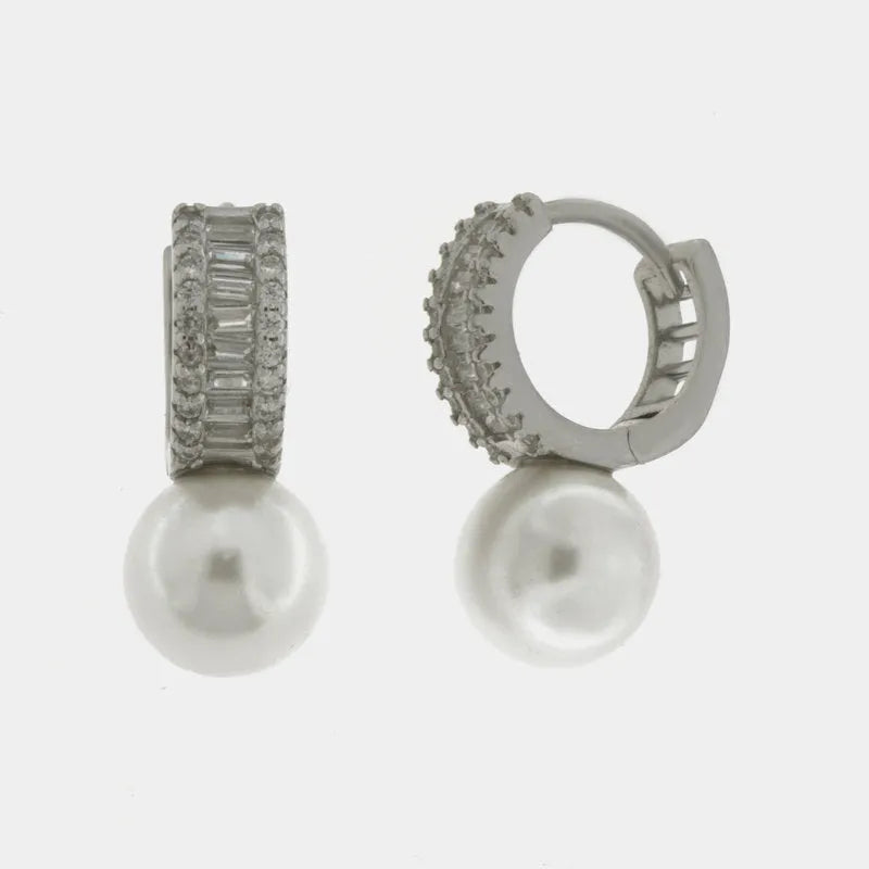 Orecchini in Argento 925 cerchio zirconato con perla pendente