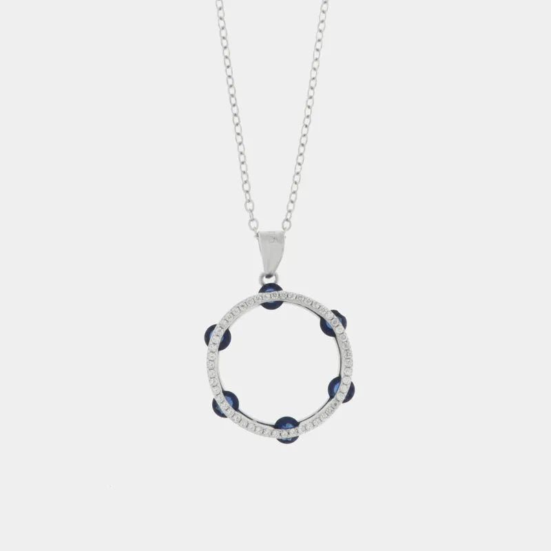 Collana in Argento 925 con tamburello impreziosito da zirconi blu