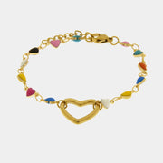 Bracciale in Acciaio con cuore centrale e cuori laterali colorati