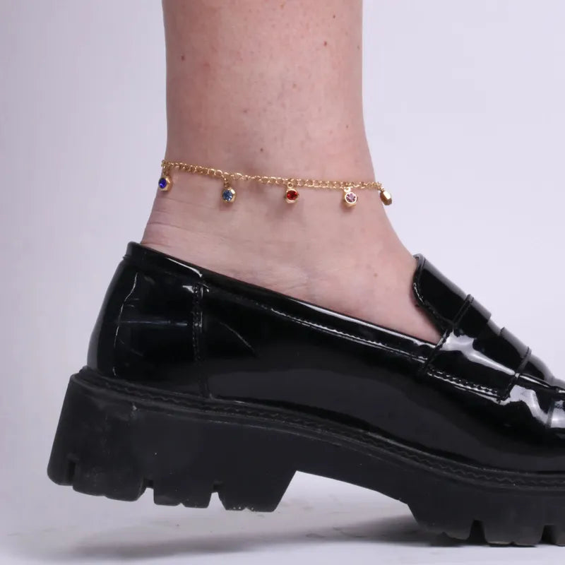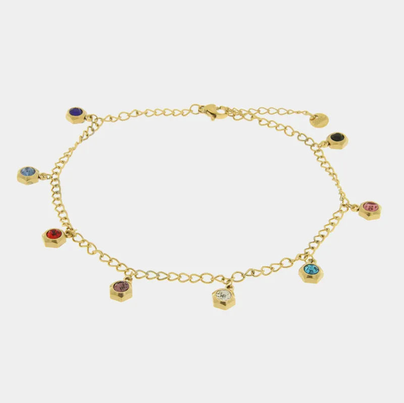 Cavigliera in Acciaio con cristalli colorati pendenti