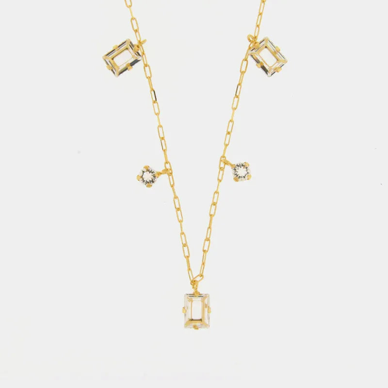 Collana in Argento 925 a catena con cristalli rettangolari pendenti