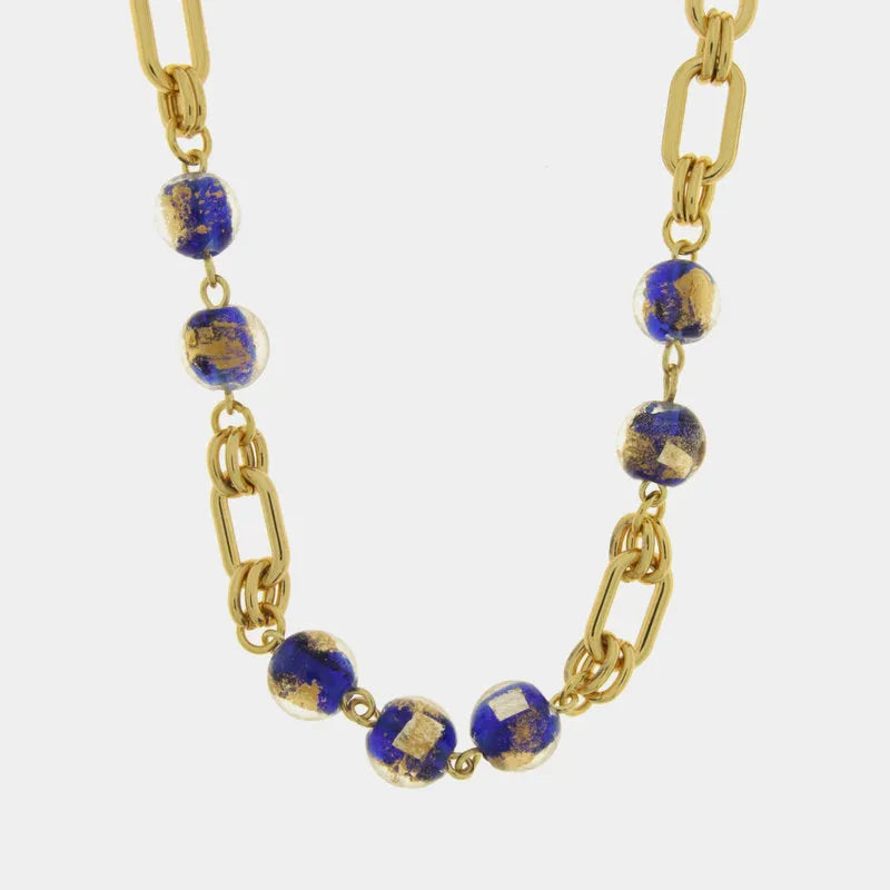 Collana in Metallo con cristalli blu ispirati al vetro di Murano