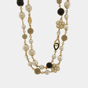 Collana in Metallo doppio filo con perle e fiore a perle bianche