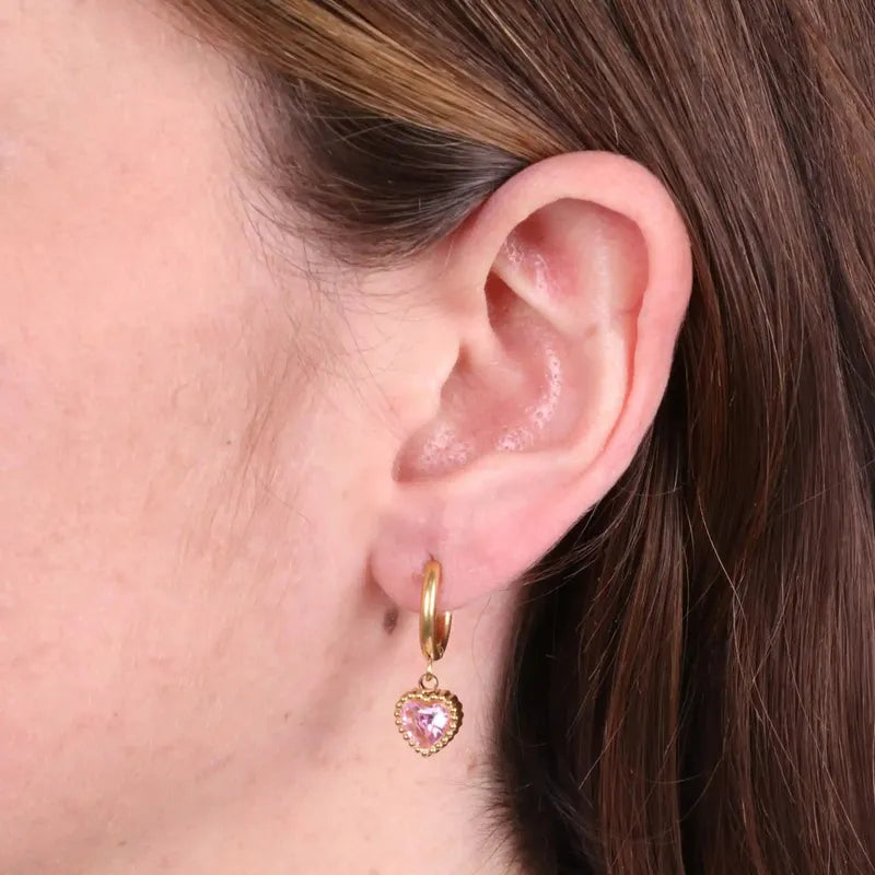 Orecchini in Acciaio cerchio con cuore rosa