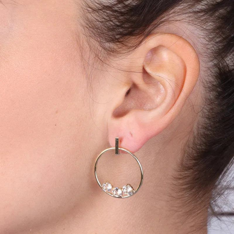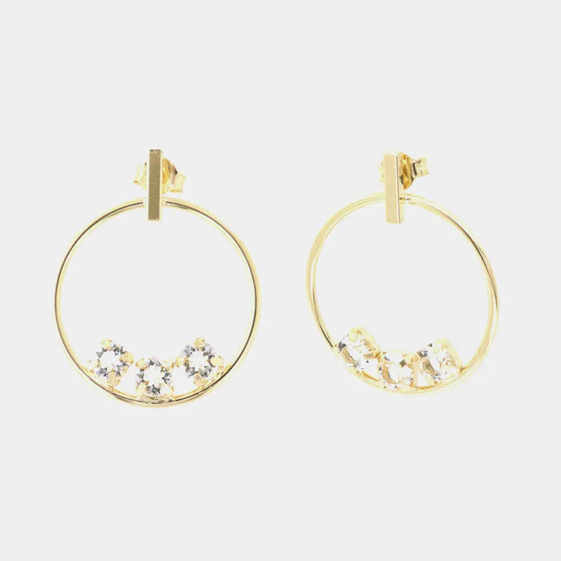 Orecchini in Argento 925 cerchio con trio di cristalli bianchi