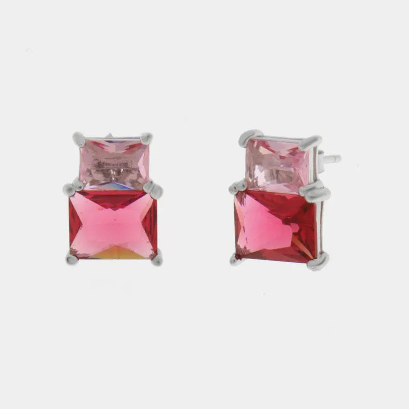 Orecchini in Argento 925 con zirconi quadrati nelle sfumature del rosso