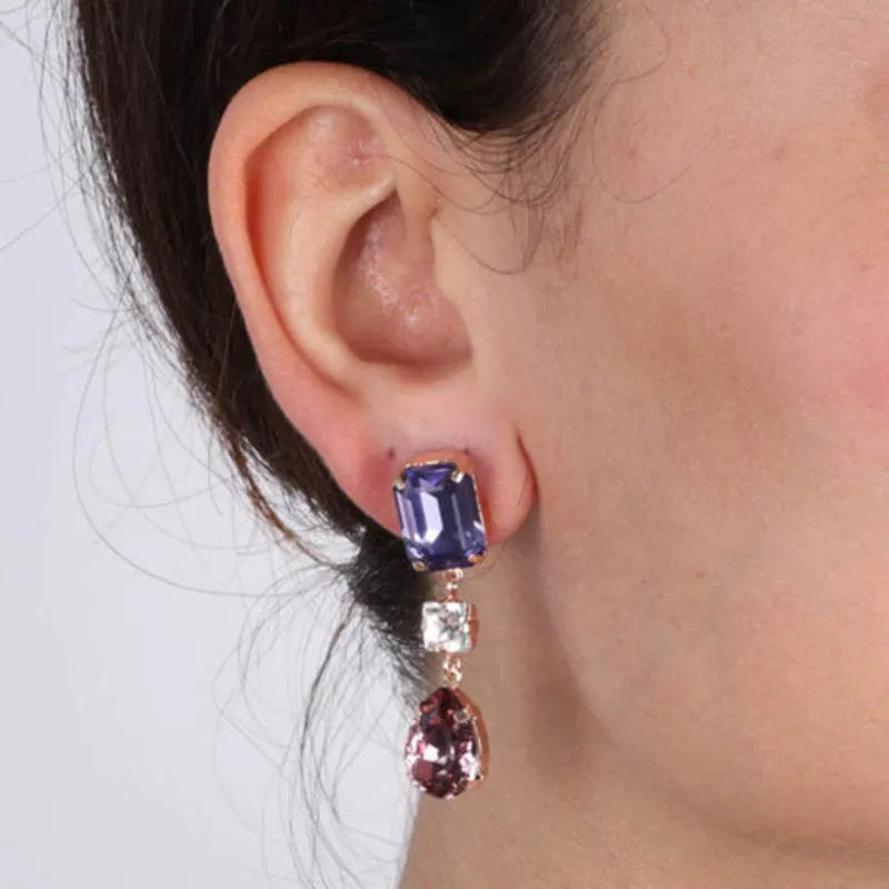 Orecchini in Argento 925 tris di cristalli colorati, pendenti