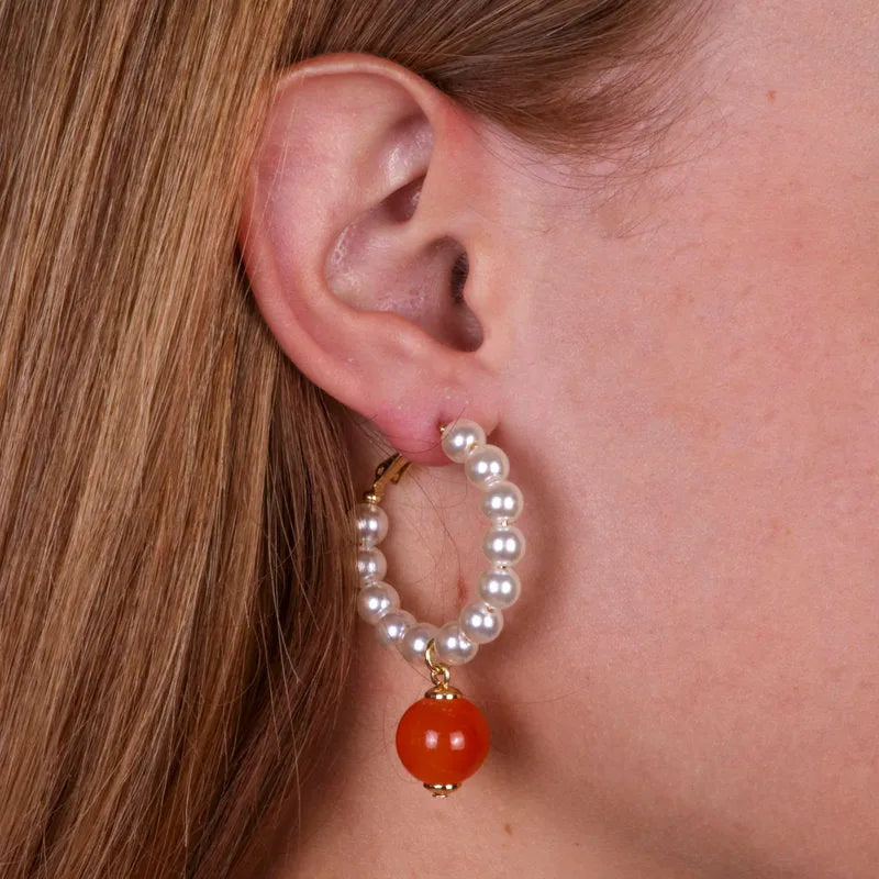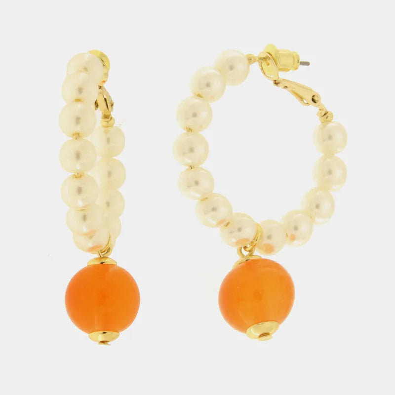 Orecchini in Metallo a cerchio con perle e pietra marrone