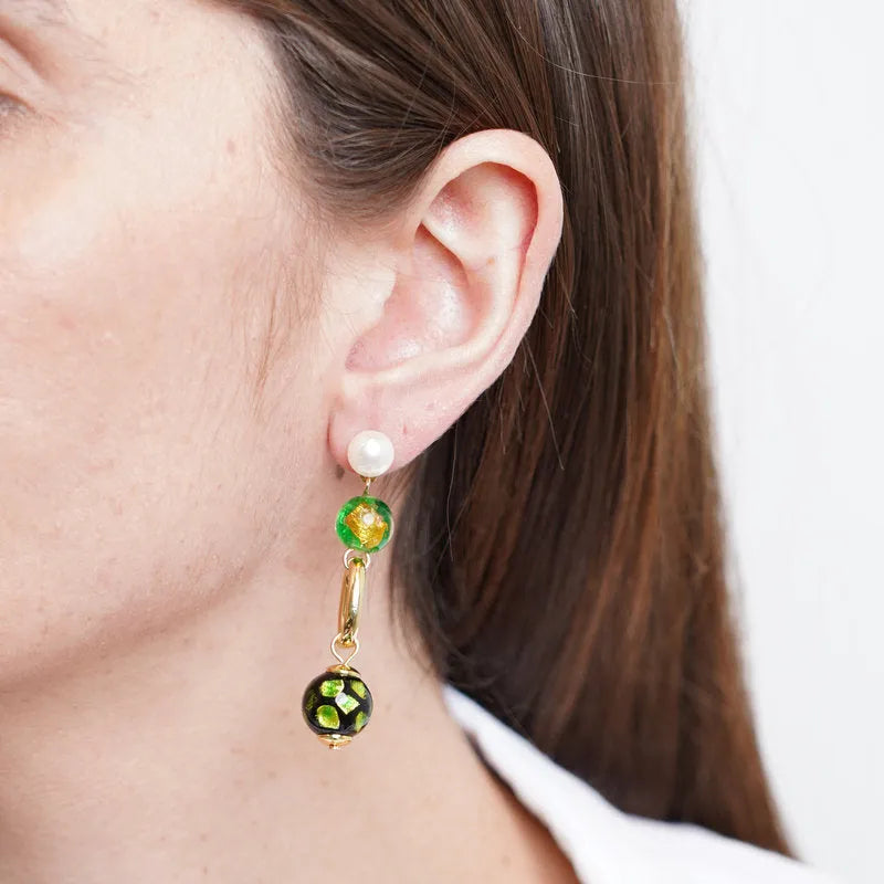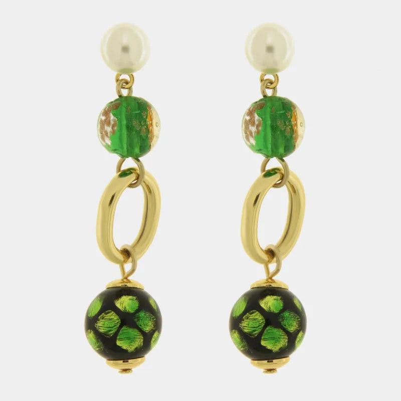 Orecchini in Metallo con cristalli verdi ispirati al vetro di Murano