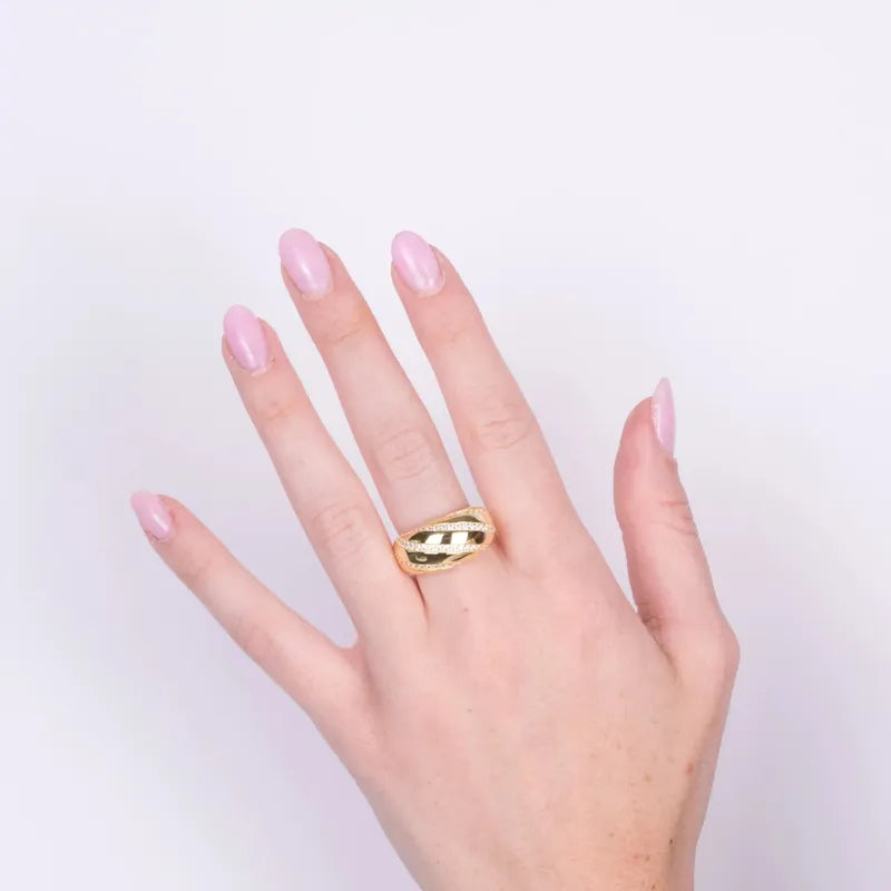 925 Silver ring with a domed band and zircons
