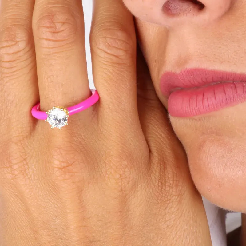 Anello in Argento 925 con smalto fucsia e zircone