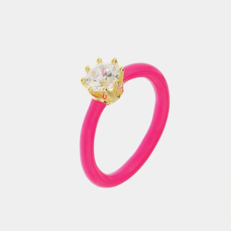 925 Silver Ring with fuchsia enamel and zircon