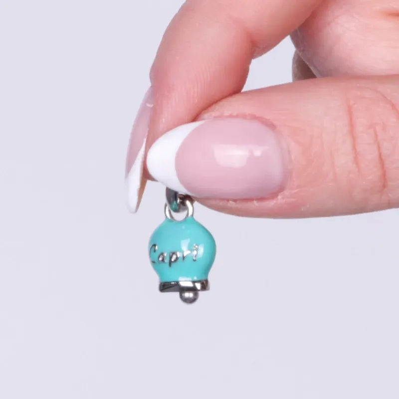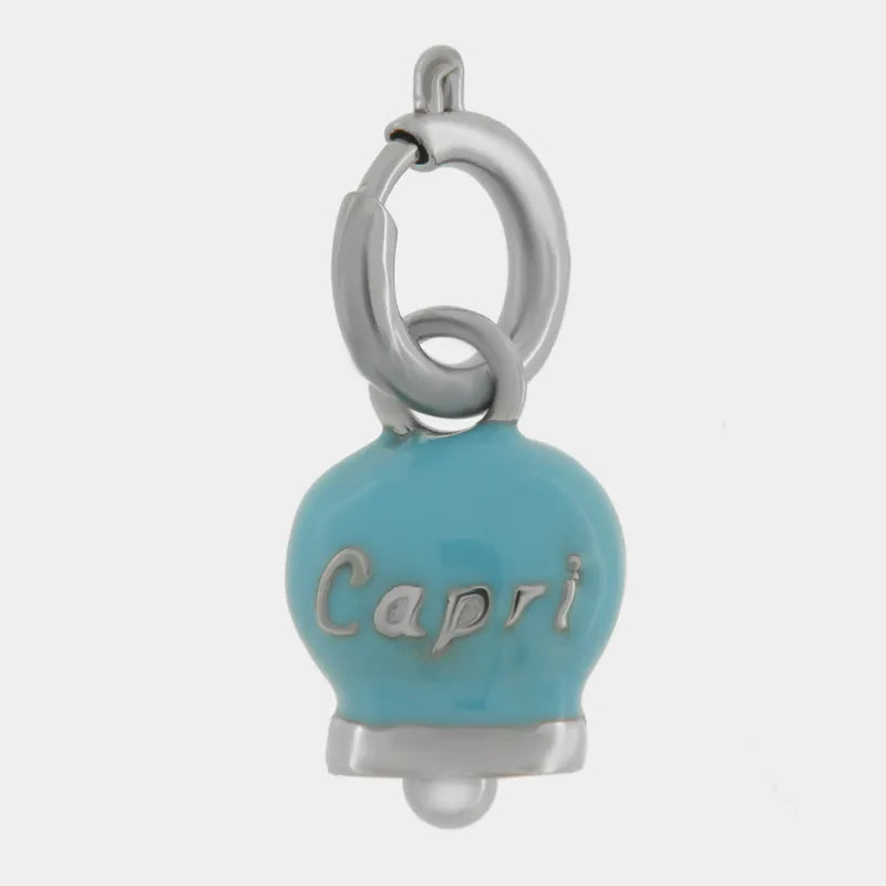 Ciondolo in Acciaio campanella azzurra con scritta Capri